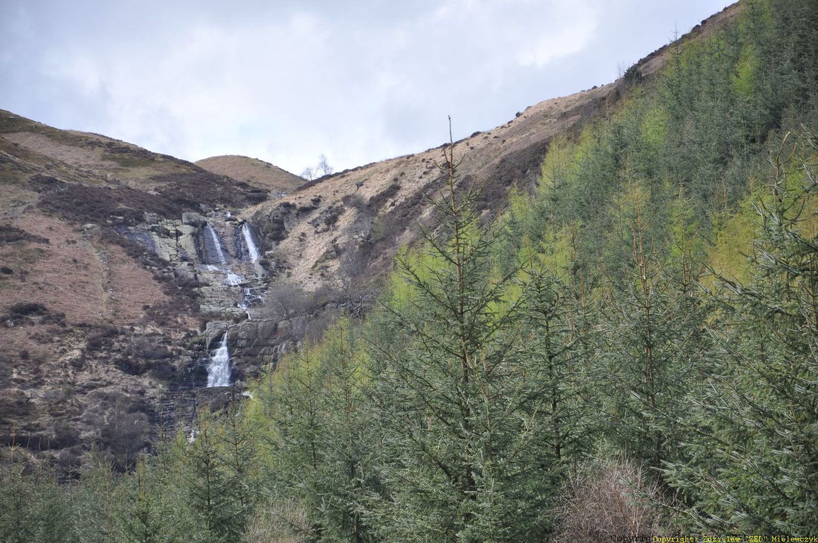 Jadąc od strony tamy, mijasz wieżę i jedziesz... jedziesz... na drugi koniec jeziora, powoli bo jak wiesz wąsko i spory ruch. Jest moment gdy patrząc w lewo zobaczysz wodospady. Dojedziesz do mostka na potoczku, który zasila jezioro i chwilę za nim trzeba skręcić w prawo. Stoi tam tablica informacyjna. Parking, miejsce na piknik, nawet toi-toika. I wtedy do wodospadu trzeba iść kawałek. Zalecam dobre buty, bo jeśli chcesz wejść trochę wyżej to teren jest mokry, miękkie podłoże. Byłem tam wczoraj i lepiej wodospad wyglądał niż wcześniej, więcej wody. Jakąś fotkę lub dwie wrzucę pod koniec tygodnia do tego tematu, bo zostawiłem sprzęt w Walii.