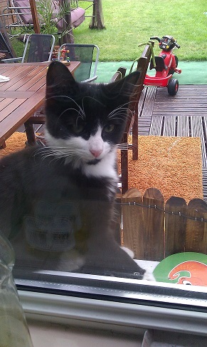 on patrzył błagalnie żebym go wpuściła do środka :) bo to zdjęcie jest zrobione od strony kuchni przez okno ,Pimpek sobie tak przesiadywał i oglądał co robimy :) Już tęsknię za nim ... A sprawdzałam z ciekawości i nie ma go na ogródku ...malaroksi, ten kociak na focie patrzy na Ciebie jakby wiedzial,ze chcesz go oddac