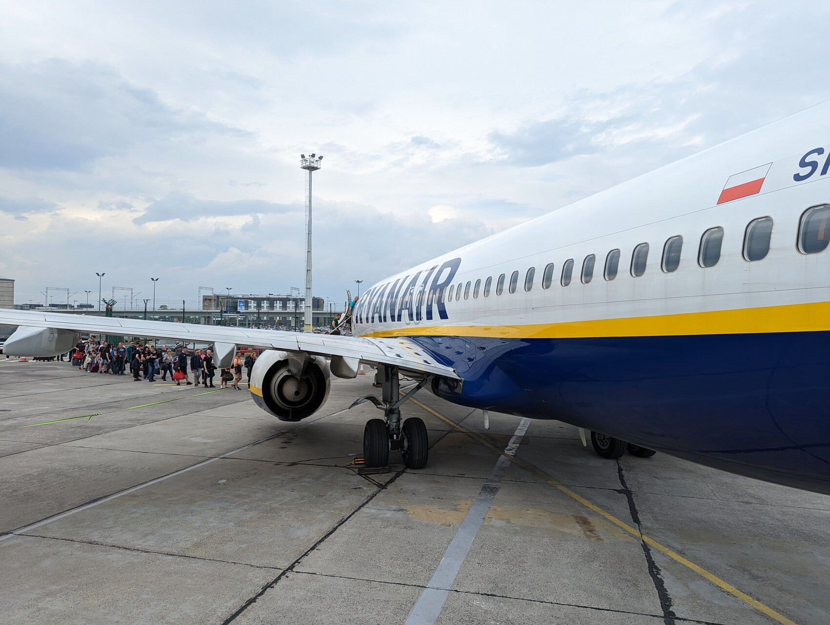 - bezpośrednio przy schodach samolotu,