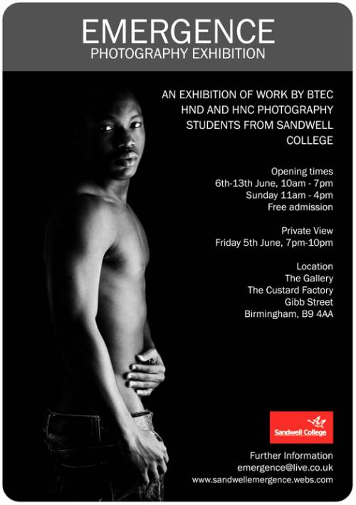 Chcialbym wszystkich serdecznie zaprosic do odwiedzenia wystawy foto "Emergence" w Custard Factory. Mozna tam zobaczyc zdjecia mojego autorstwa oraz prace kilkunastu innych absolwentow szkoly foto. Wstep jest bezplatny a wystawa jest otwarta codziennie od 10 do 19.