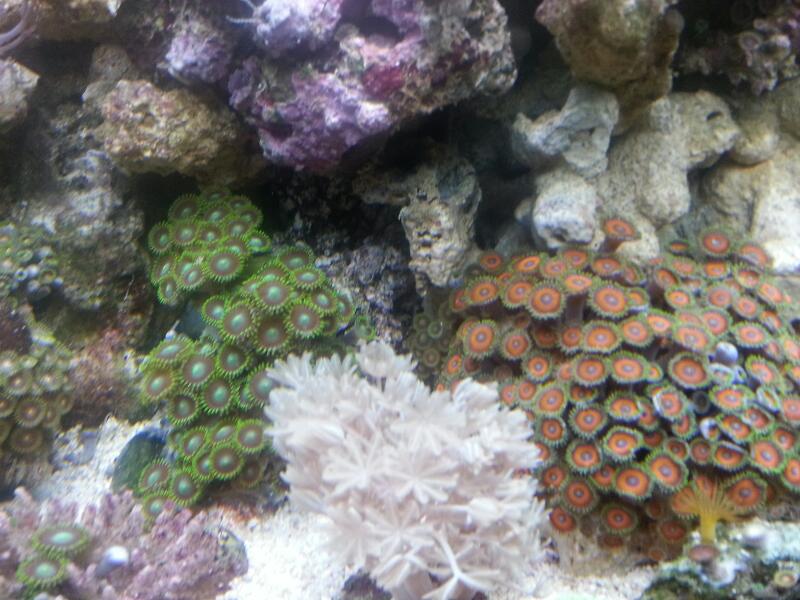 przewiń sobie na pozycję Zoanthus a będziesz widział jaki kolor powinny mieć zdrowe ZOA u kolegi, niestety tu są strasznie zaniedbane. Szorstnik na środku to albo wypasiona Aiptasia, ale nie wiedzę innych więc albo będzie plaga i to konkretna albo już jest, jeśli to jednak jest nie aiptasia a prawdziwy szorstnik: